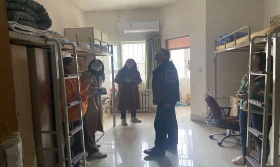 党委副书记郝秀峰带领辅导员深入两校区学生宿舍,开展安全卫生检查,督促指导学生宿舍安全工作,走访慰问新学期返校部分学生。