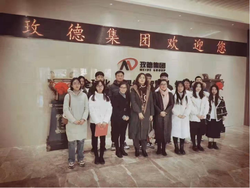 组织2022届毕业生代表在滕晖、蒋静老师带领下,前往玫德集团参观,感受企业风采、聆听职场人士对职业选择的看法与人生经验。