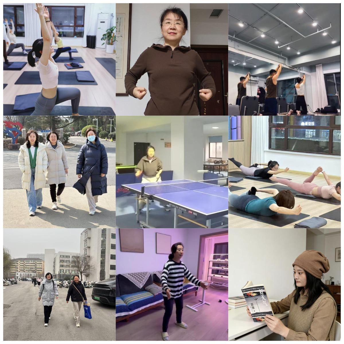 有的老师参加了“书香润心”阅读赋能活动,阅读《女性养生三步走》《爱的教育》《好天气》《要有光》等重点推荐书目,撰写读书心得,在墨香中沉淀心灵,提升素养。通过读书,深度启发了教师们的使命和职责,重新审视了教育的意义,老师们更懂得如何做一名“有光有爱”的教师。有的老师参加了“健康相伴”健身行动,结合假期休闲时光,练习八段锦、乒乓球、坚持健步走等运动,搭配叩齿、吞津、摩腹等中医养生功法,强健体魄。有的老师还到健身房进行瑜伽锻炼和体能训练,在挥洒汗水中释放压力、塑造身形,以更加轻盈的体态和饱满的精神迎接新学期的挑战。有的老师坚持每天早睡早起,规律作息,每日坚持靠墙站10分钟、餐食八分饱等,养成良好的生活习惯,矫正体态,缓解肩颈腰痛,打断久坐危害,让身心始终处在健康舒适的状态。