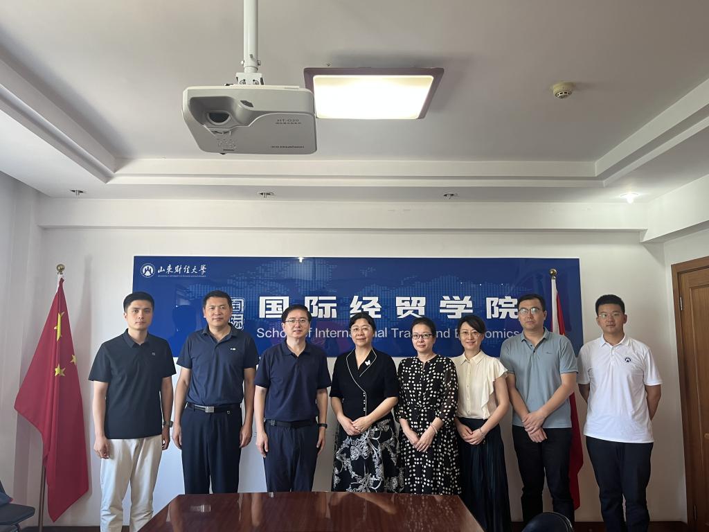 95级校友马光伟,山东省贸促会发展研究部二级调研员吕方涌和四级主任科员宋庆琛一行莅临我院交流座谈。国际经贸美高梅官网