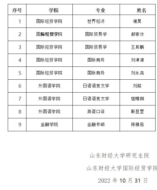 山东财经大学2022级国际商务专业硕士中日韩方向录取名单