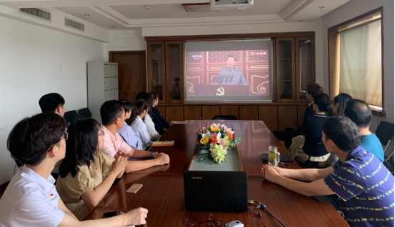 党委组织师生党员代表,在会议室集中收看庆祝中国共产党成立100周年大会。被省委组织部抽调,正在聊城进行安全生产督导的美高梅官网
